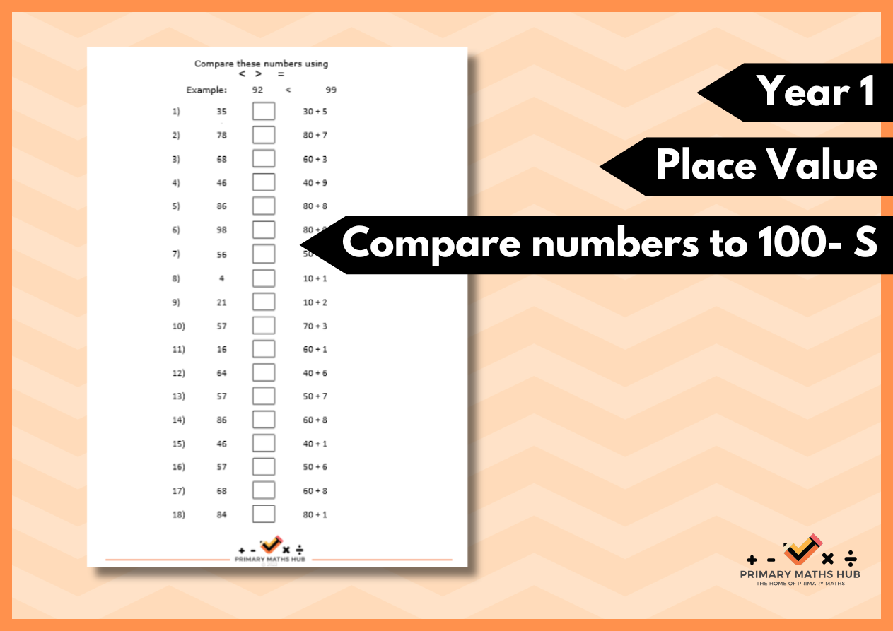 Compare numbers to 100- Sheet