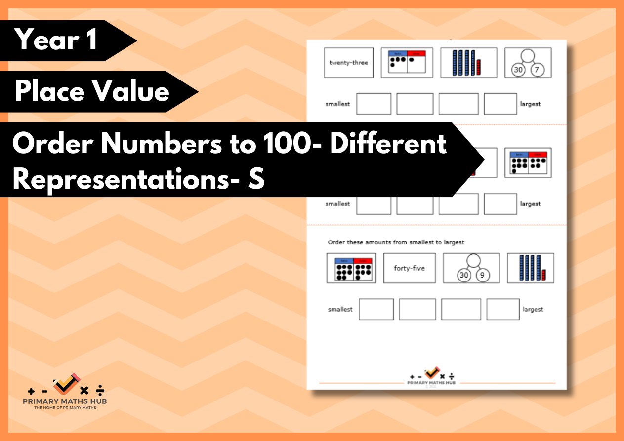 Order Numbers to 100- Different Representations- Sheet