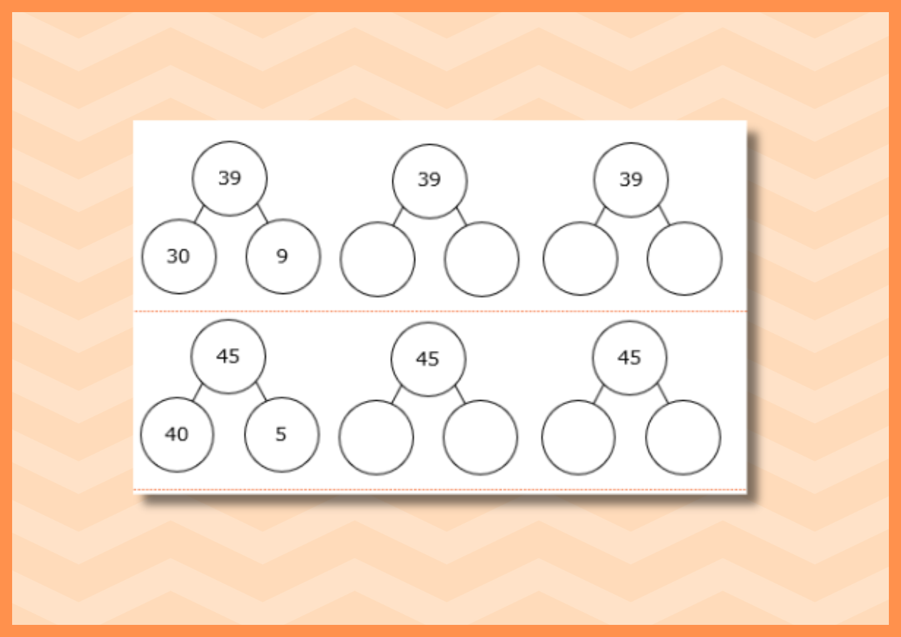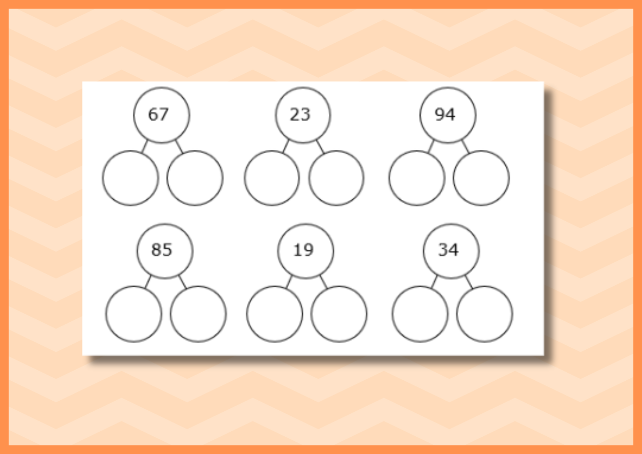 Partition Numbers to 100- Part-Whole Model- Sheet