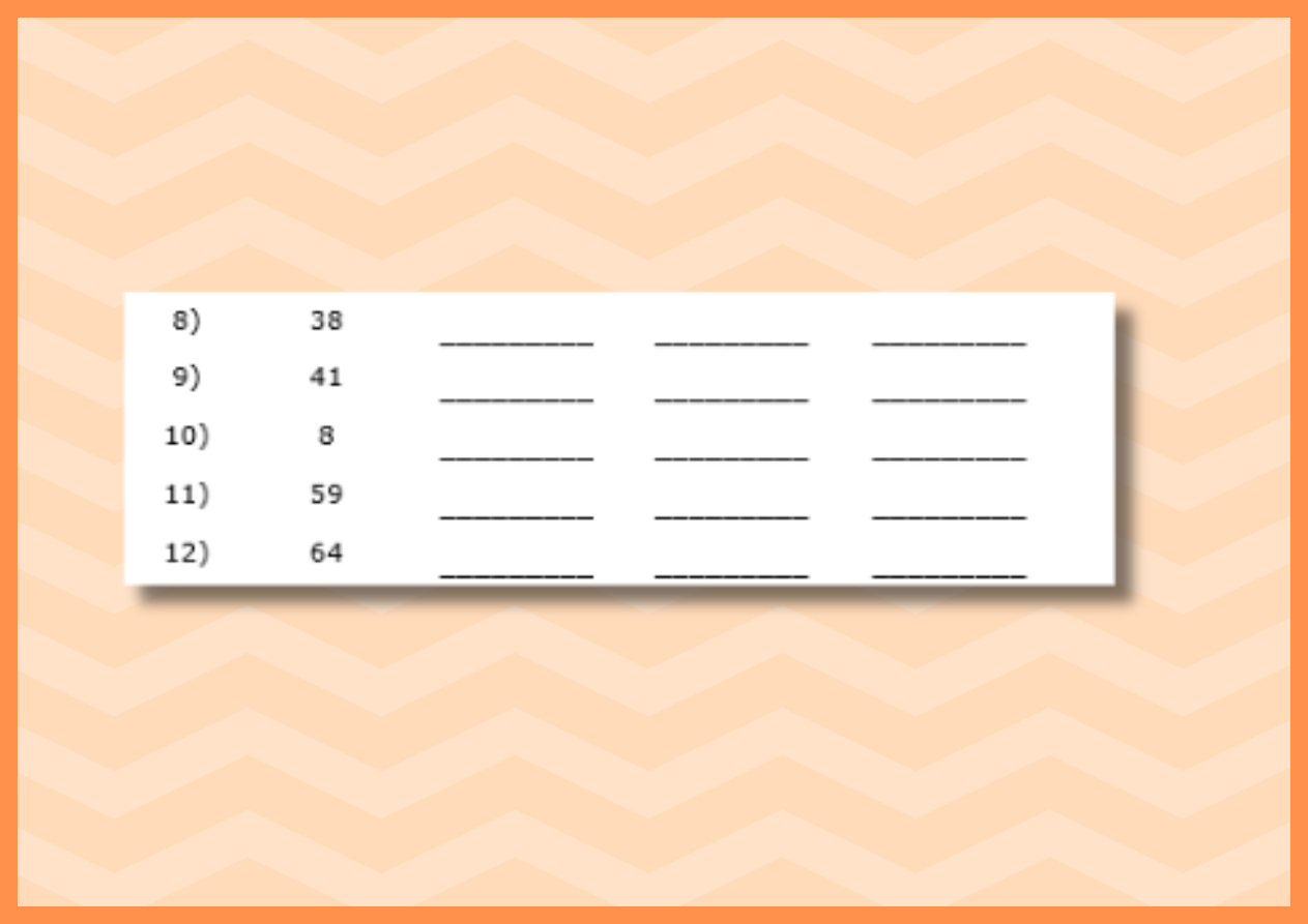 Partition Numbers to 100- Sheet